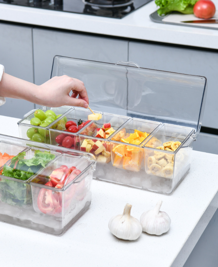 サラダ収納ボックス アウトドア パーティー ピクニック コンパートメント アイスボックス サラダプレート 5コンパートメント 家庭用 透明 鮮度保持ボックス